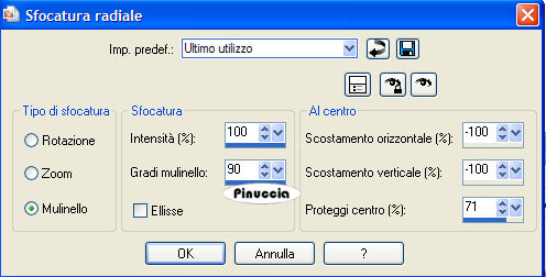 Regola>Sfocatura>Sfocatura radiale, con i settaggi precedenti.
