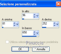 poichè i settaggi della selezione non coprivano il riquadro centrale,