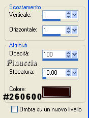 10. Effetti>Effetti 3D>Sfalsa ombra, con i seguenti settaggi, colore #260600.