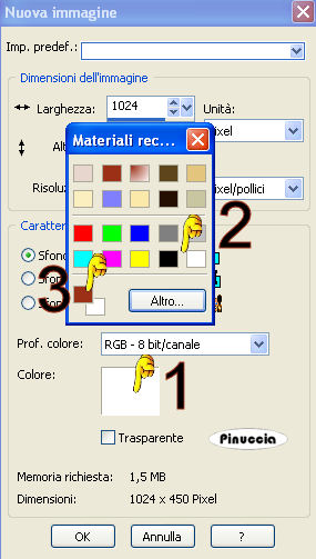 Più velocemente, Se clicchi con il tasto destro del mouse sulla paletta del colore (1), si aprirà una piccola paletta.