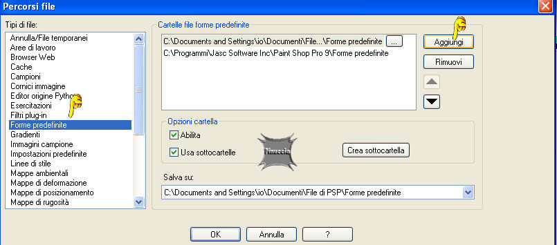 Nella finestra a sinistra seleziona "Forme predefinite" e a destra clicca su Aggiungi: