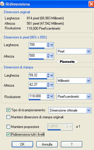 Immagine>Ridimensiona - 700 x 500 pixels, mantieni proporzioni non selezionato.