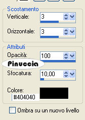 Effetti>Effetti 3D>Sfalsa ombra, con i seguenti settaggi.