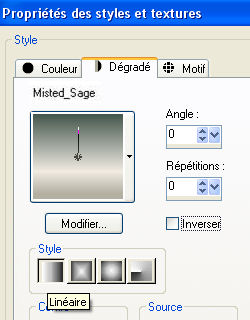 1. Placer en avant plan dégradé, et sélectionner le dégradé Misted_Sage, style Linéaire.