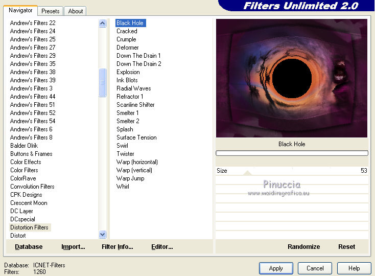 21. Effets>Modules Externes>Filters Unlimited 2.0 - Distortion Filters – Black Hole.