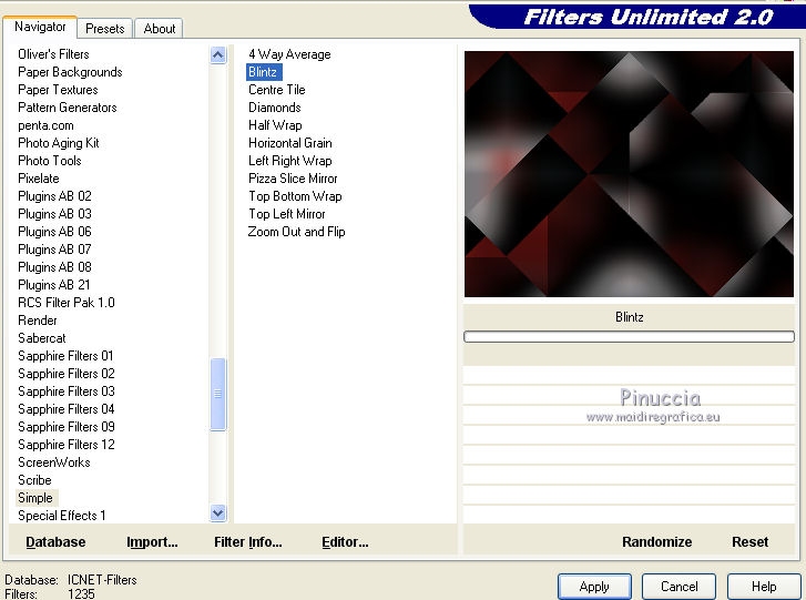 Effets>Modules Externes>Filters Unlimited 2.0 - Simple - Blintz.