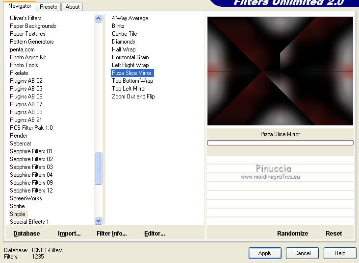 7. Effets>Modules Externes>Filters Unlimited 2.0 - Simple - Pizza Slice Mirror.