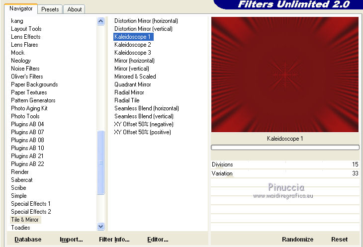 9. Effetti>Plugins>Filters Unlimited 2.0 - Tile & Mirror - Kaleidoscope 1.