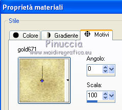 16. Passa il colore di primo piano a Motivi e seleziona il motivo "gold 671" con i seguenti settaggi.