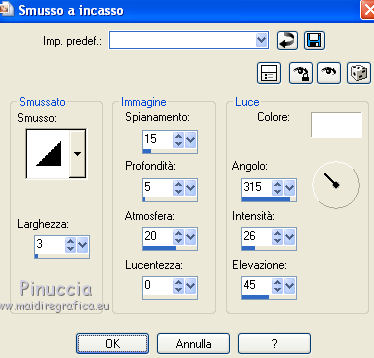 Effetti>Effetti 3D>Smusso a incasso, con i settaggi precedenti.