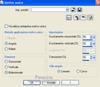 15. Effetti>Effetti di immagine>Motivo unico, con i settaggi standard.