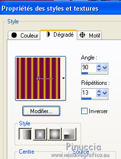 Changer encore une fois les réglages du dégradé, angle 90, répétitions 13