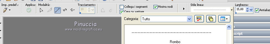 17. Attiva lo strumento Penna , linea di stile Rombo, larghezza 15 pixels.