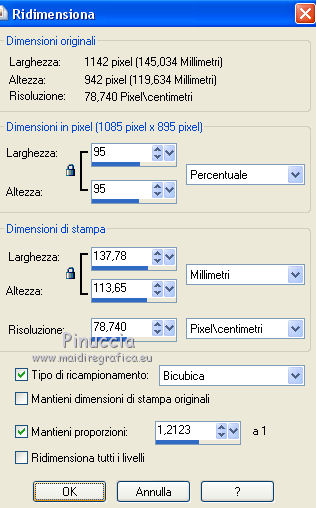 26. Immagine>Ridimensiona, al 95%, tutti i livelli non selezionato.