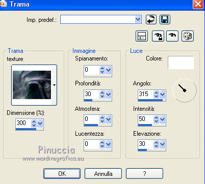 ricorda che questo filtro lavora con i lavori impostati nella paletta dei materiali, ma tiene in memoria il primo settaggio dall'apertura del programma.