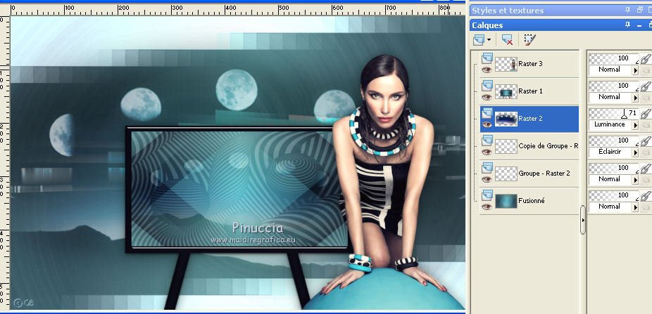 Placer le calque en mode Luminance (héritée) et réduire l'opacité à 67%.