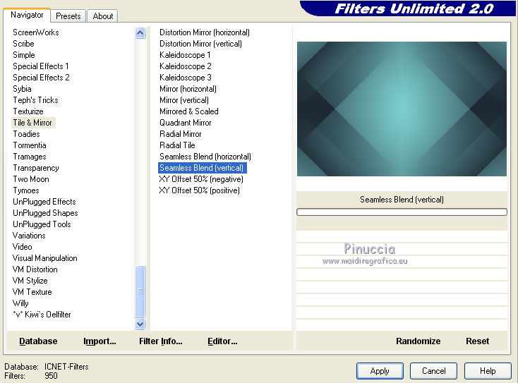 5. Effets>Modules Externes>Filters Unlimited 2.0 - Tile & Mirror - Seamless Blend (Vertical)
