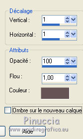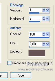 Effets>Effets 3D>Ombre portée, couleur d'avant plan #655355.
