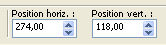 et placer Position horiz.: 274,00 et Position vert.: 118.