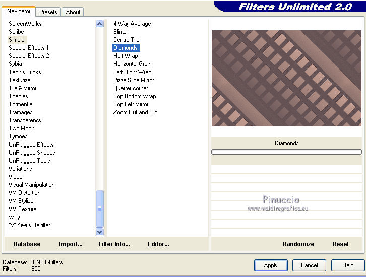 7. Effets>Modules Externes>Filters Unlimited 2.0 - Simple - Diamonds.