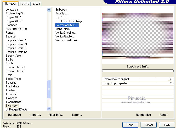 11. Effets>Modules Externes>Filters Unlimited 2.0 - Two Moon - Scratch and Sniff.