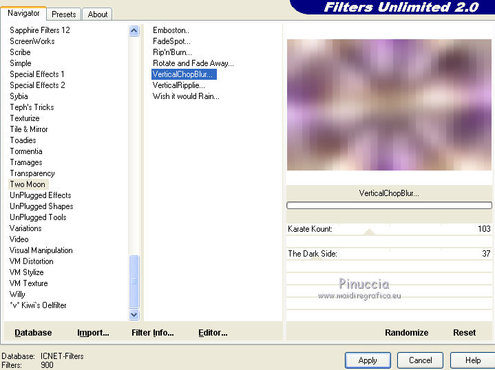 9. Effets>Modules Externes>Filters Unlimited 2.0 - Two Moon - Vertical Chop Blur.