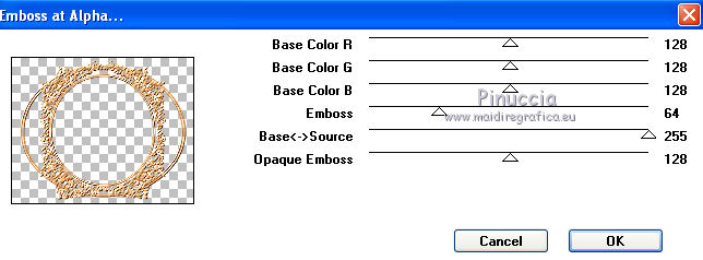 Effetti>Plugins>Mura's Seamless - Emboss at Alpha, con i settaggi standard.