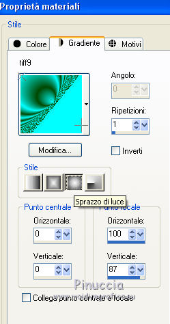 1. Passa il colore di primo piano a Gradiente e seleziona il gradiente tiff9, con i seguenti settaggi.