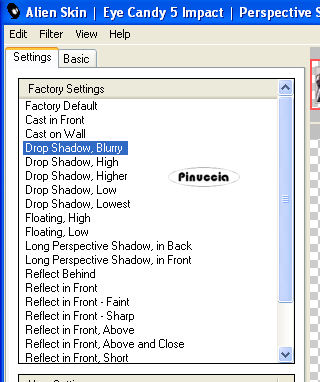 Effetti>Plugins>Alien Skin Eye Candy 5 Impact - Perspective Shadow,