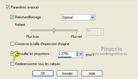 Image>Redimensionner, en fonction du tube utilisé, redimensionner tous les calques décoché.