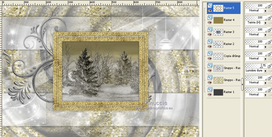 Placer le calque en mode Lumière dure, et réduire l'opacité à 75%.