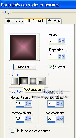 Préparer en avant plan un dégradé de premier plan/arrière plan/style Rectangulaire.