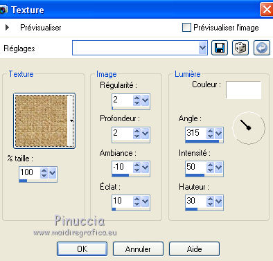 34. Effets>Effets de textures>Texture - sélectionner la texture Lino (mais vous pouvez utiliser une texture à votre goût)
