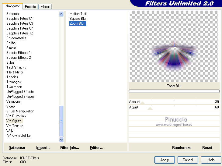 23. Effets>Modules Externes>VM Toolbox - Zoom Blur, par défaut