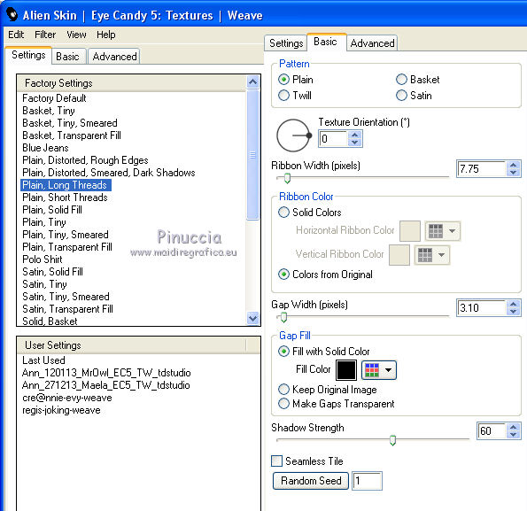 7. Effets>Modules Externes>Alien Skin Eye Candy 5 Texture - Weave.