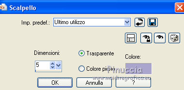 Effetti>Effetti 3D>Scalpello, con i settaggi precedenti, ma Trasparente selezionato.