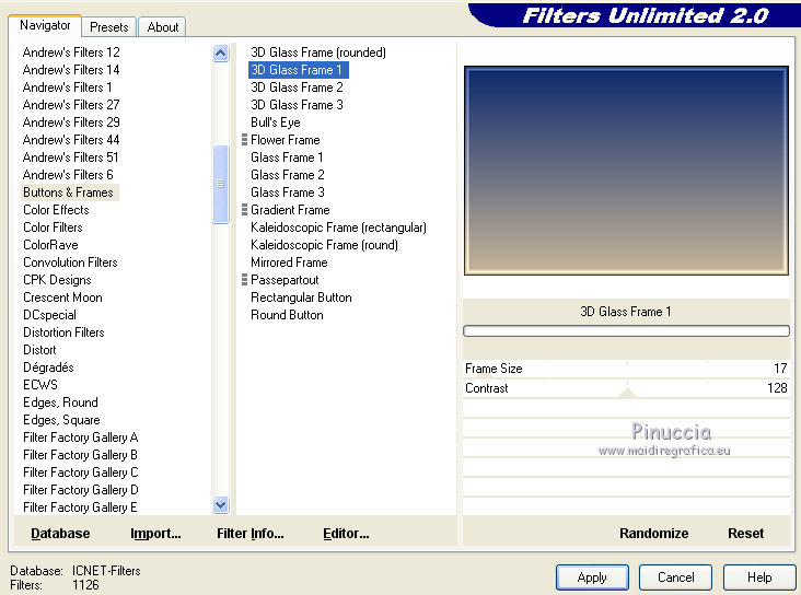15. Effetti>Plugins>Filters Unlimited 2.0 - Buttons & Frames - 3D Glass Frame1.