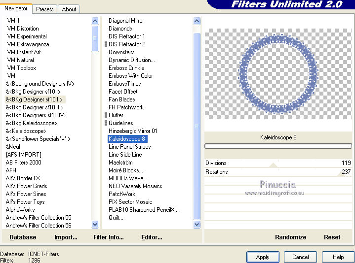 4. Effetti>Plugins>Filters Unlimited 2.0 - &<Bkg Designer sf10II> - Kaleidoscope 8.