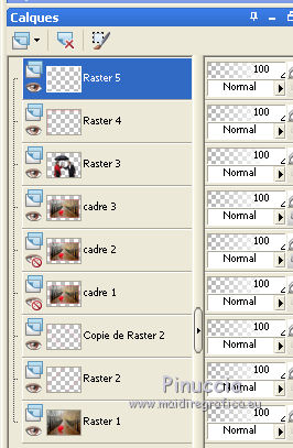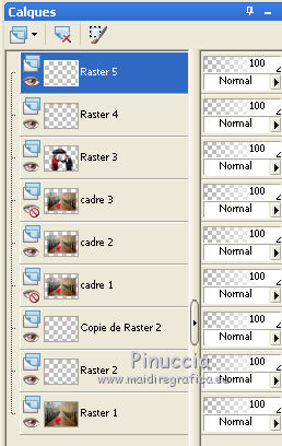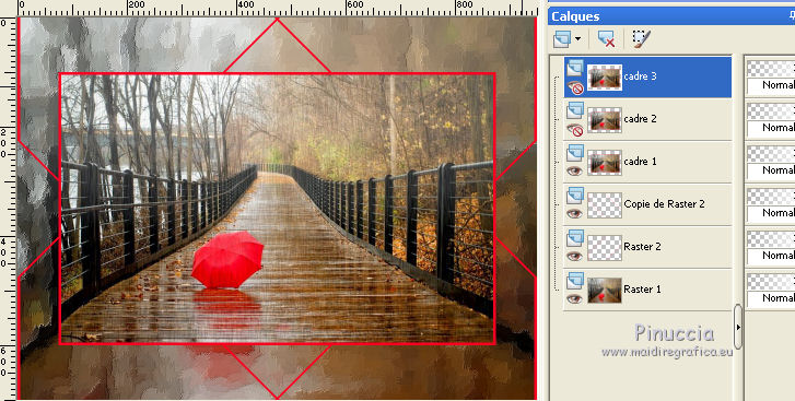 14. Calques>Dupliquer - 2 fois, et renommer les 3 calques cadre 1, cadre 2, cadre 3.