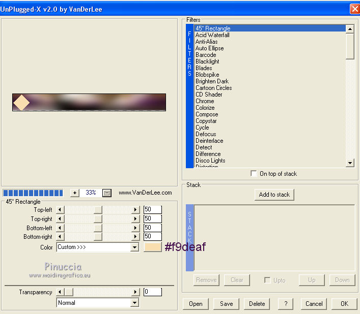 29. Effetti>Plugins>VanDerLee - Unplugged-X - 45º Rectangle - colore #f9deaf.