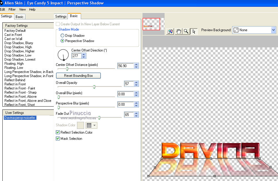 51. Effetti>Plugins>Alien Skin Eye Candy 5 Impact - Perspective Shadow.