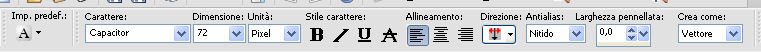 68. Attiva lo strumento Testo font Capacitor, 72 pixels, colore di sfondo #ffffff.