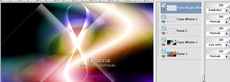 5. Nella paletta dei livelli cambia la modalità di miscelatura di questo livello in Luce netta.