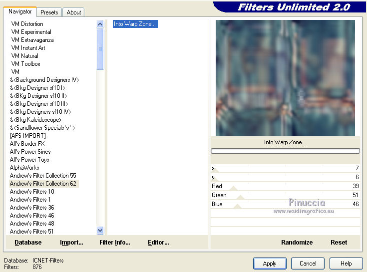 6. Effets>Modules Externes>Filters Unlimited 2.0 - Andrew's Filter Collection 62 - Into Warp Zone.