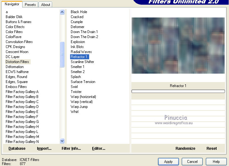9. Effets>Modules Externes>Filters Unlimited 2.0 - Distortion Filters - Refractor 1.