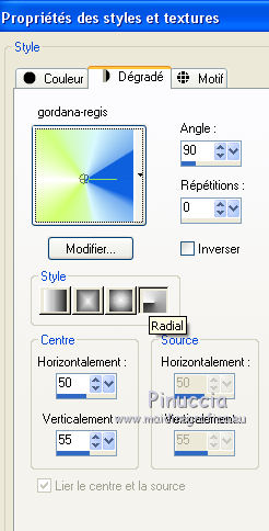 Placer en avant plan Dégradé, et sélectionner le dégrade gordana-regis, style Radial.