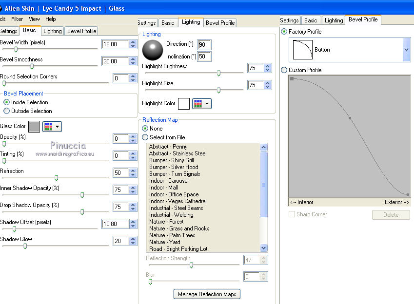 10. Effets>Modules Externes>Alien Skin Eye Candy 5 Impact - Glass.