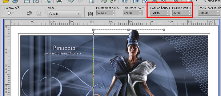 et placer Position horiz.: 421,00 et Position vert.: 22,00.