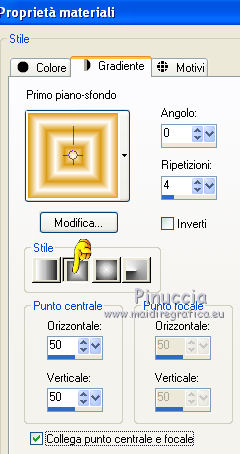 Passa il colore di primo piano a Gradiente rettangolare, con i seguenti settaggi.