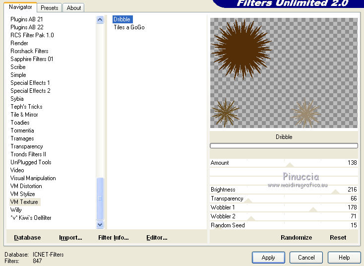 Effetti>Plugins>Filters Unlimited 2.0 - VM Texture - Dribble.